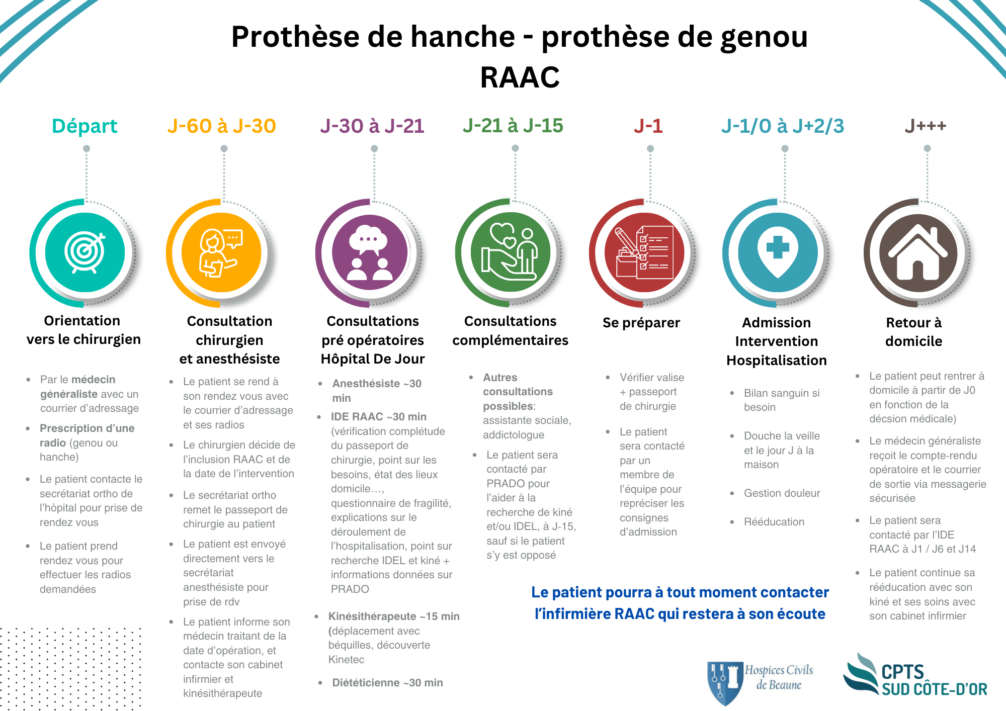 Les acteurs de santé de la CPTS Sud Côte d’Or, en lien avec l’hôpital de Beaune, et ses autres partenaires, ont élaboré un parcours RAAC (Récupération Anticipée Après Chirurgie) orthopédie.